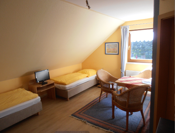 Pro Zimmer sind je zwei Einzelbetten vorhanden.